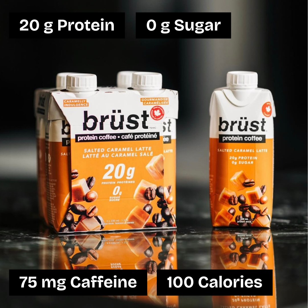 Salted Caramel Latte: Each bottle has 20 g protein, 0 g sugar, a full cup of cold brew coffee (75 mg caffeine), and only 100 calories.