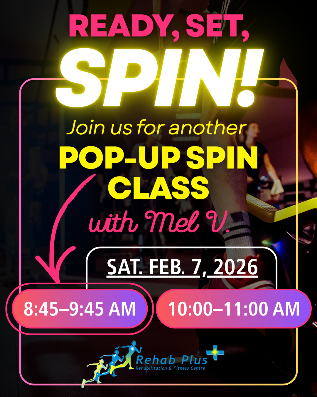Mel V. has ADDED A SPIN CLASS this Sat. Feb. 7th from 8:45-9:45 AM.