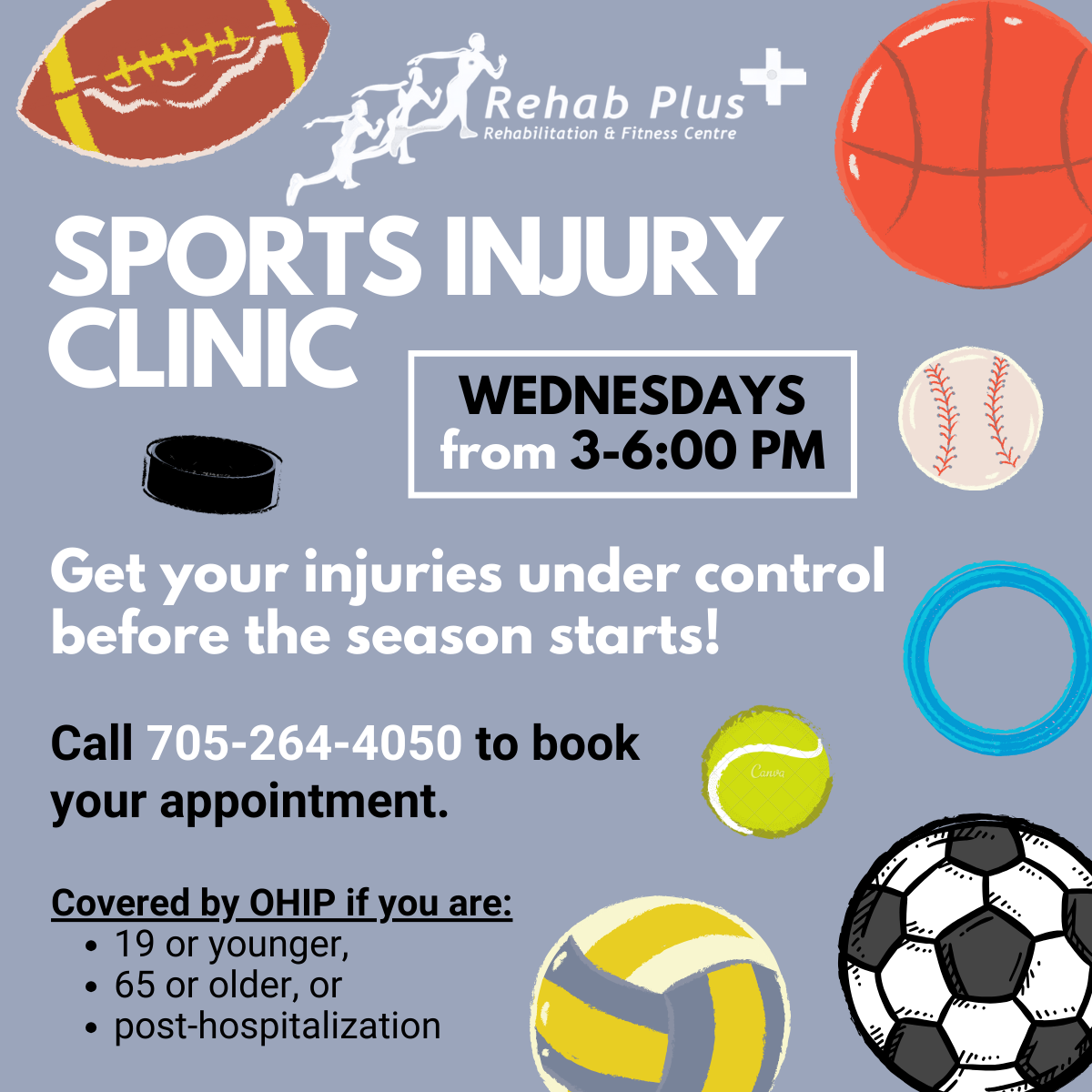 The clinic is held every Wednesday from 3:00-6:00 PM. Walk-ins are welcome, but we highly recommend booking an appointment as the clinic can get pretty busy. Call us at 705-264-4050 to save your spot!