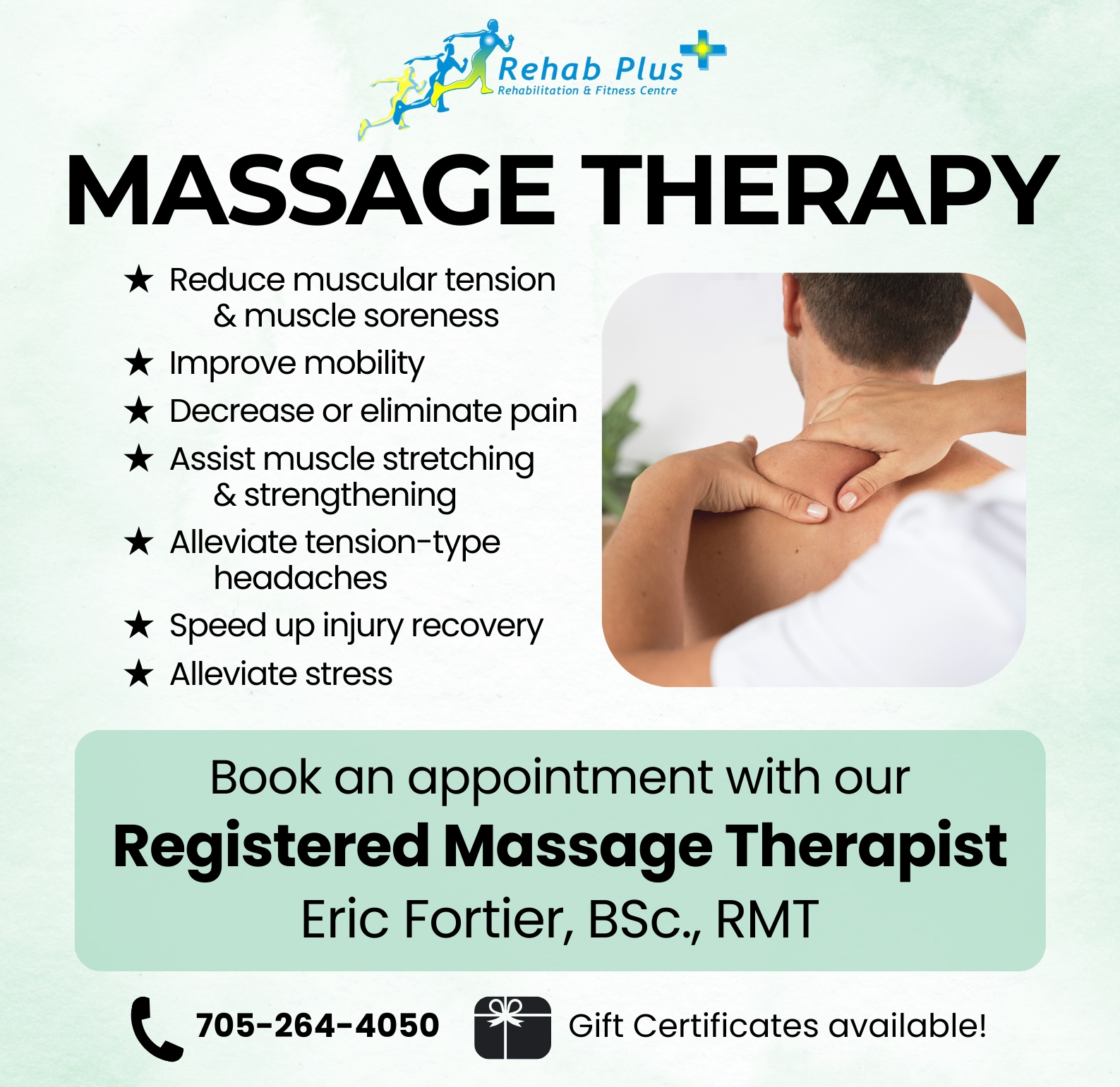 Treat your loved ones—or yourself!—to a massage from our Registered Massage Therapist, Eric Fortier, BSc., RMT.